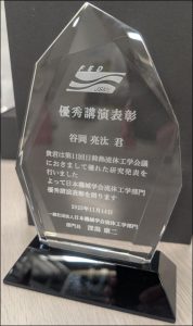 谷岡 亮汰さん(工学専攻/水嶋研究室)が第11回日韓機械学会合同・熱流体国際会議において「優秀講演表彰」を受賞